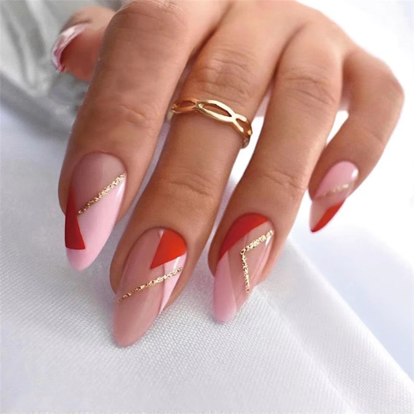 أظافر مزيفة يمكن ارتداؤها 24 أو مانيكير ، أظافر مزيفة قابلة للإزالة ، تابوت باليرينا ، أظافر مزينة باللوز للسيدات والفتيات ، تزيين فني